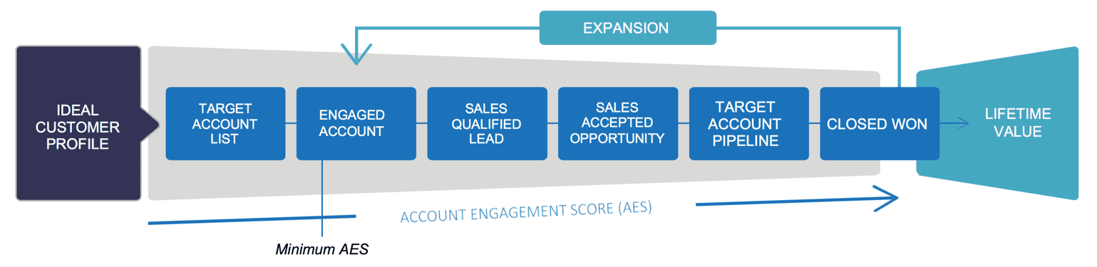 Engaged Account/Account Engagement Score (AES) | The measure of an organization’s interactions with an account, including marketing, sales development, sales, and customer success |