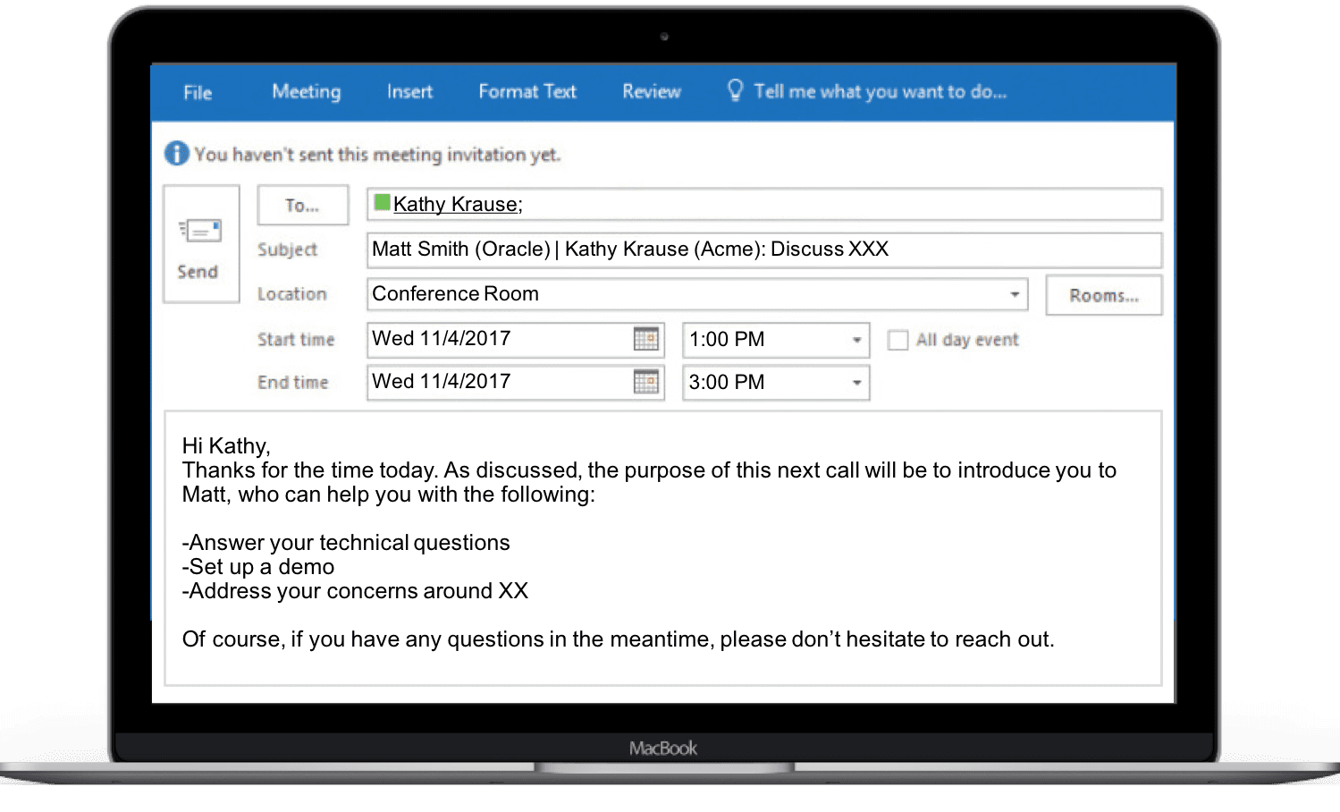 - Send the calendar invite with the “handoff template” introducing the prospect to the sales rep.